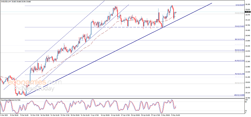 白银价格反弹,但仍未突破今年迄今的高点26.08美元,白银仍受到买家的支撑,使白银在26.00美元附近交易。来自美国的数据显示,在美国银行业持续动荡的情况下,劳动力市场正在放缓,这给市场情绪带来了压力。白银报25.96,上涨1.40%。 在美国经济持续恶化、美国国债收益率不断下降的情况下,交易员寻求避险,引发了贵