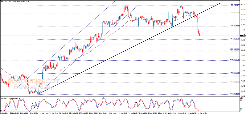 白银价格全线暴跌,美国数据显示通胀正在降温,而劳动力市场开始放松,美联储官员抱怨劳动力市场紧张。美国国债收益率下降,但美元升至本周新高,对汇率构成不利。截止目前,白银的交易价约为24.20美元,下跌4.50%。 白银的暴跌将价格拖入测试50日指数移动均线(A),并在向南的过程中突破了两个关键支撑位:首先,20日
