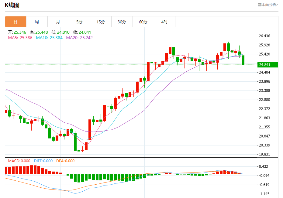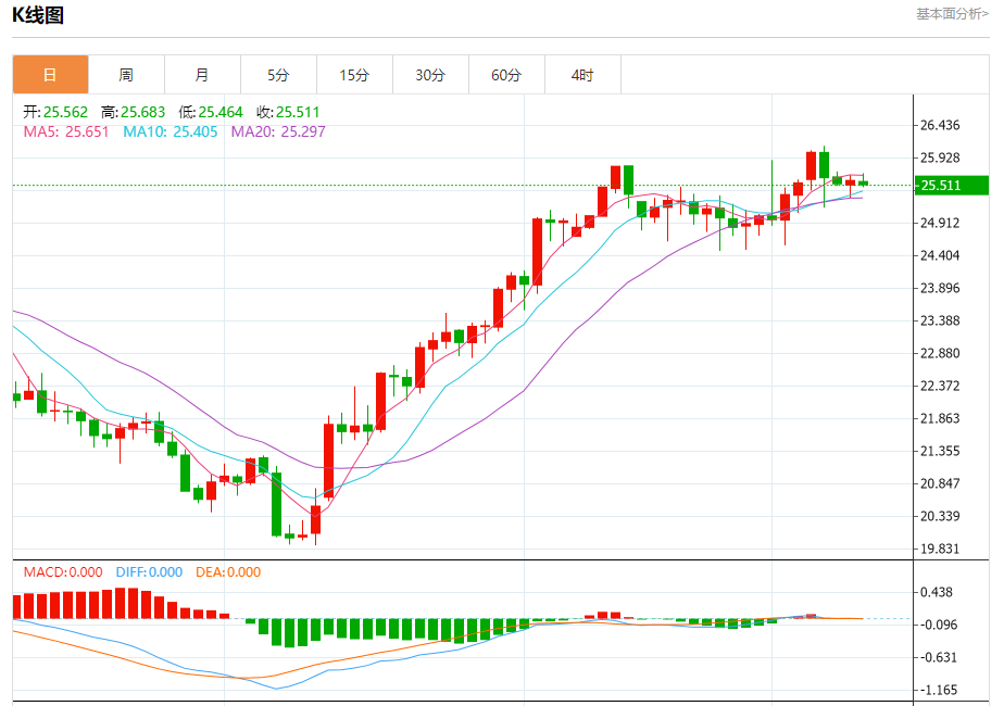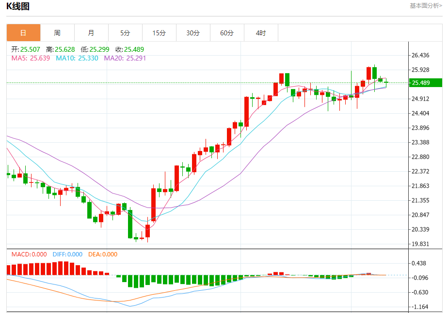 白银在早盘上扬至26.00美元附近后吸引了一些卖家,并在周四的欧洲早盘时段扩大了盘中跌幅。白银在最后一小时跌至新的日低约25.45美元,目前看来,已经结束了连续两天的涨势,回到了周一触及的逾两周高点附近。 从技术角度看,最近在26.00美元整数关口附近的反复遇阻,可以看作是可能的看涨衰竭的第一个迹象。然而,