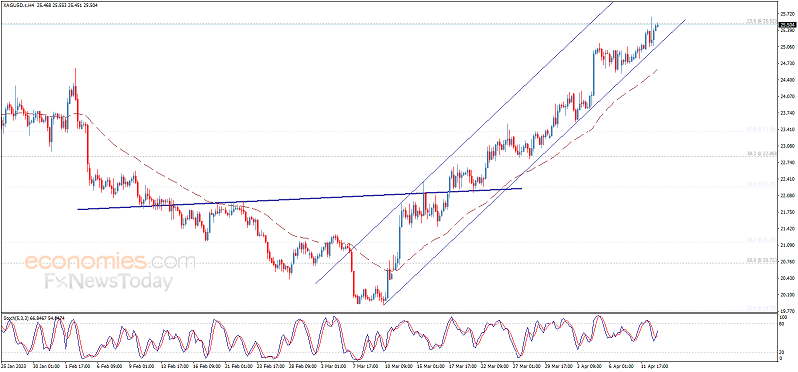 基本消息面 周三(4月12日),现货白银维持日内强劲升势,银价目前位于25.40美元/盎司附近,日内大涨1.4%。美元指数延续日内跌势,现报102.05左右。疲软的美元对银价构成提振。 根据conoi.co,若银价攻克首个看涨目标25.50美元/盎司,这将为银价进一步大涨铺平道路。 相关新闻消息 银价自昨日以来呈现升势,并