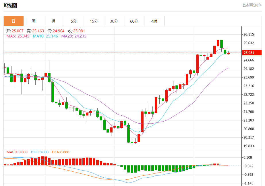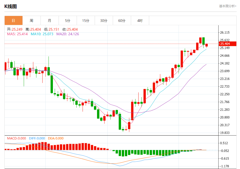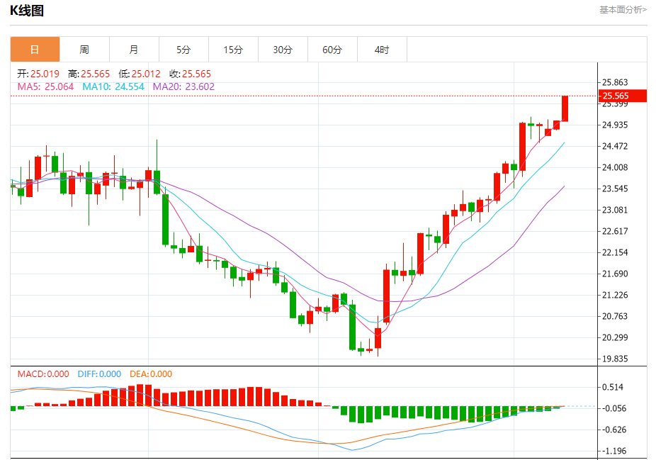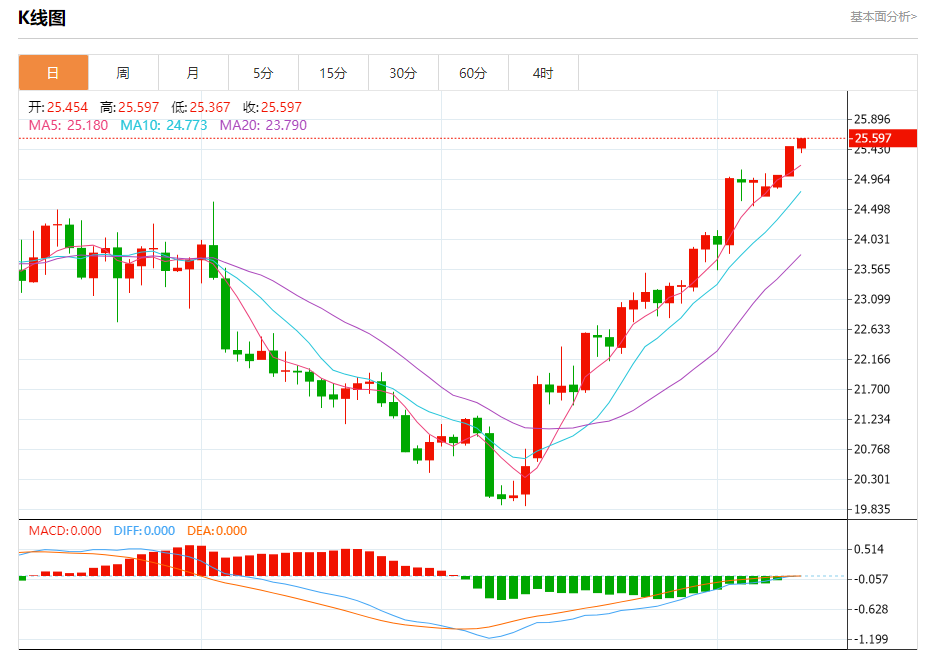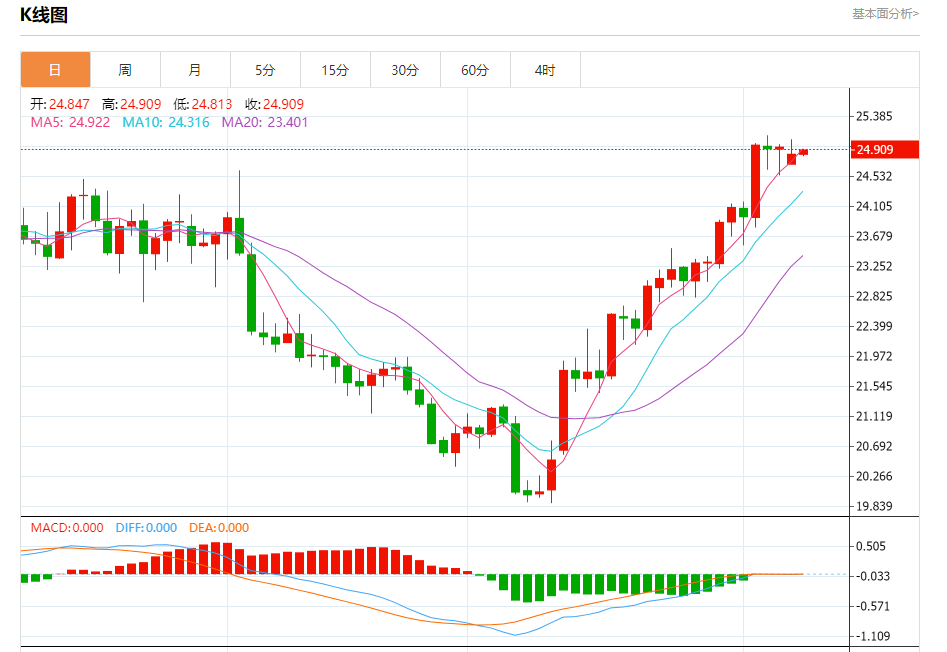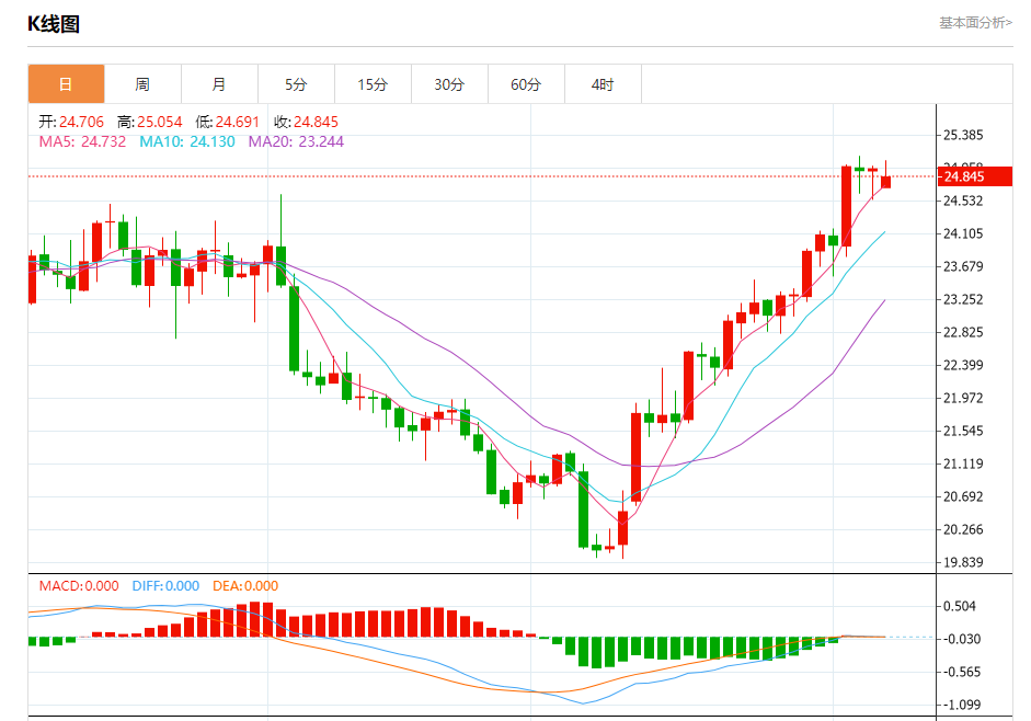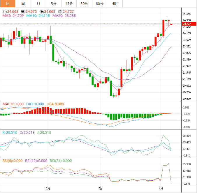 4月10日,周一纽市盘中,白银在新的一周的第一天吸引了一些逢低买入,并在欧洲交易日的上半段稳步回升,接近25.00美元的心理关口。目前,白金属价格略低于周五触及的近一年高点,似乎有望延长过去一个月左右的近期上涨轨迹。 上周持续突破24.30美元至24.40美元的水平大关,被视为牛市交易员的新导火索。此外,在上述阻