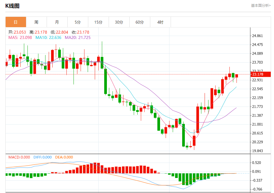 基本消息面 周五(3月24日),现货白银略微回落,银价目前位于23.05美元/盎司附近。 根据conoi.co,若确认突破重要阻力23.05美元/盎司,这将为银价进一步大幅攀升打开空间。 相关新闻消息 银价在23.05美元/盎司附近波动,并尝试突破这一水平。目前等待白银获得正面动能,从而帮助推动银价确认突破23.05美元/盎