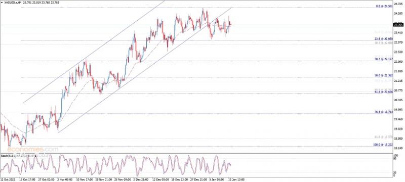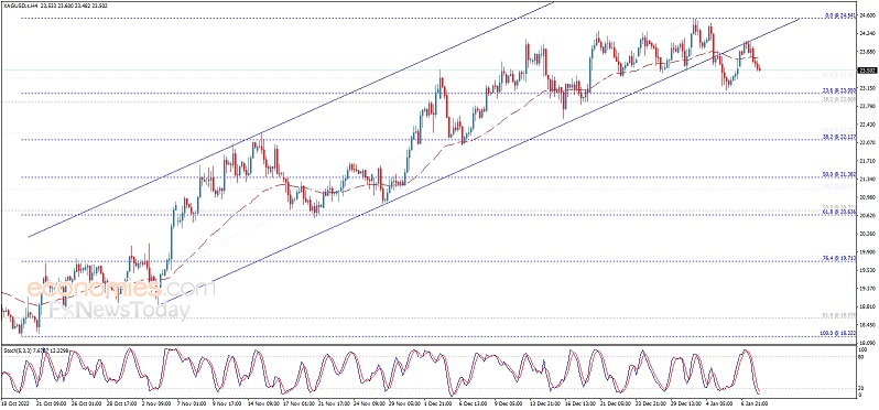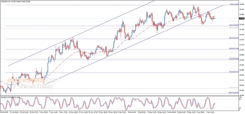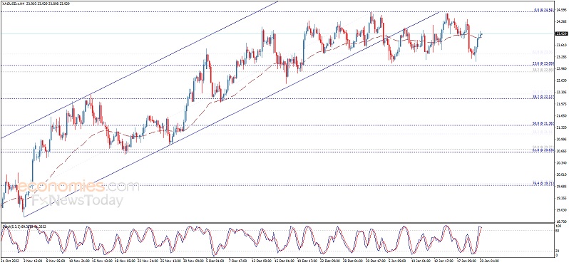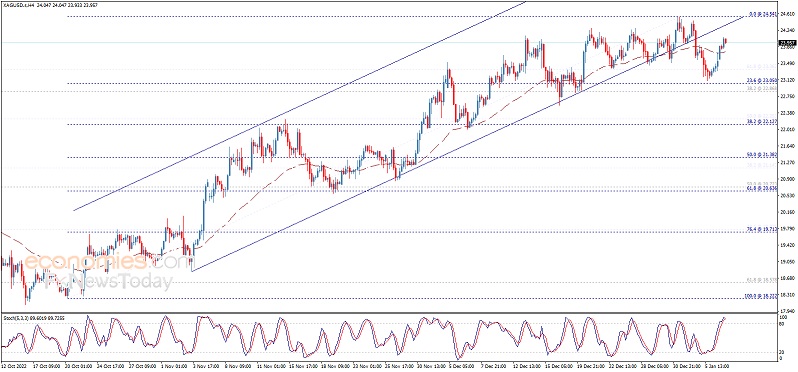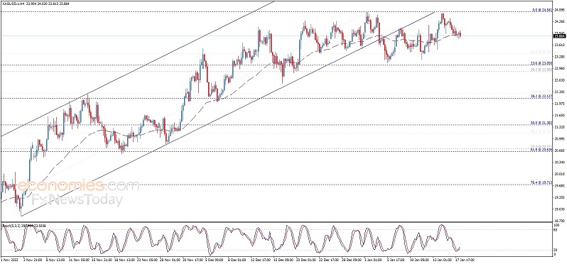 由于美元尾盘走强抵消了当天美元的跌幅,白银价格连续第二天暴跌,周三跌至23.50美元以下,这是白银的逆风。周四盘中,白银交易价格为23.37美元,比开盘价低1.97%。 白银价格分析展望 白银日线图显示,白银有中性或上行偏向。尽管回调清除了20天指数移动平均线(A),但需要决定性地跌破1月5日的日低点23.12美元,才能将