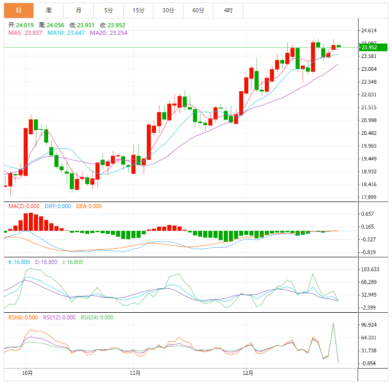 基本消息面 周二(1月3日),现货白银维持涨势,银价现报24.40美元/盎司附近,日内大涨近2%。 根据conoi.co,银价已经突破首个看涨目标24.00美元/盎司,这为白银进一步大涨打开空间。 相关新闻消息 银价在一度触及看涨通道支撑后强势反弹,并突破我们首个看涨目标24.00美元/盎司,这为银价在日内以及短期内继