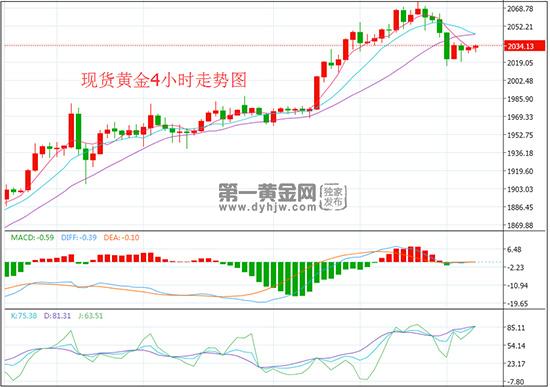 从日线图上看,布林带开口,金价连续第二个交易日走低,上周四一度升至2075.47,续刷历史高位。MACD金叉、红柱能量小幅削弱,KDJ高位死叉、指数高于80。从技术面看,金价短线可能会有回调风险,但整体仍维持乐观看涨。