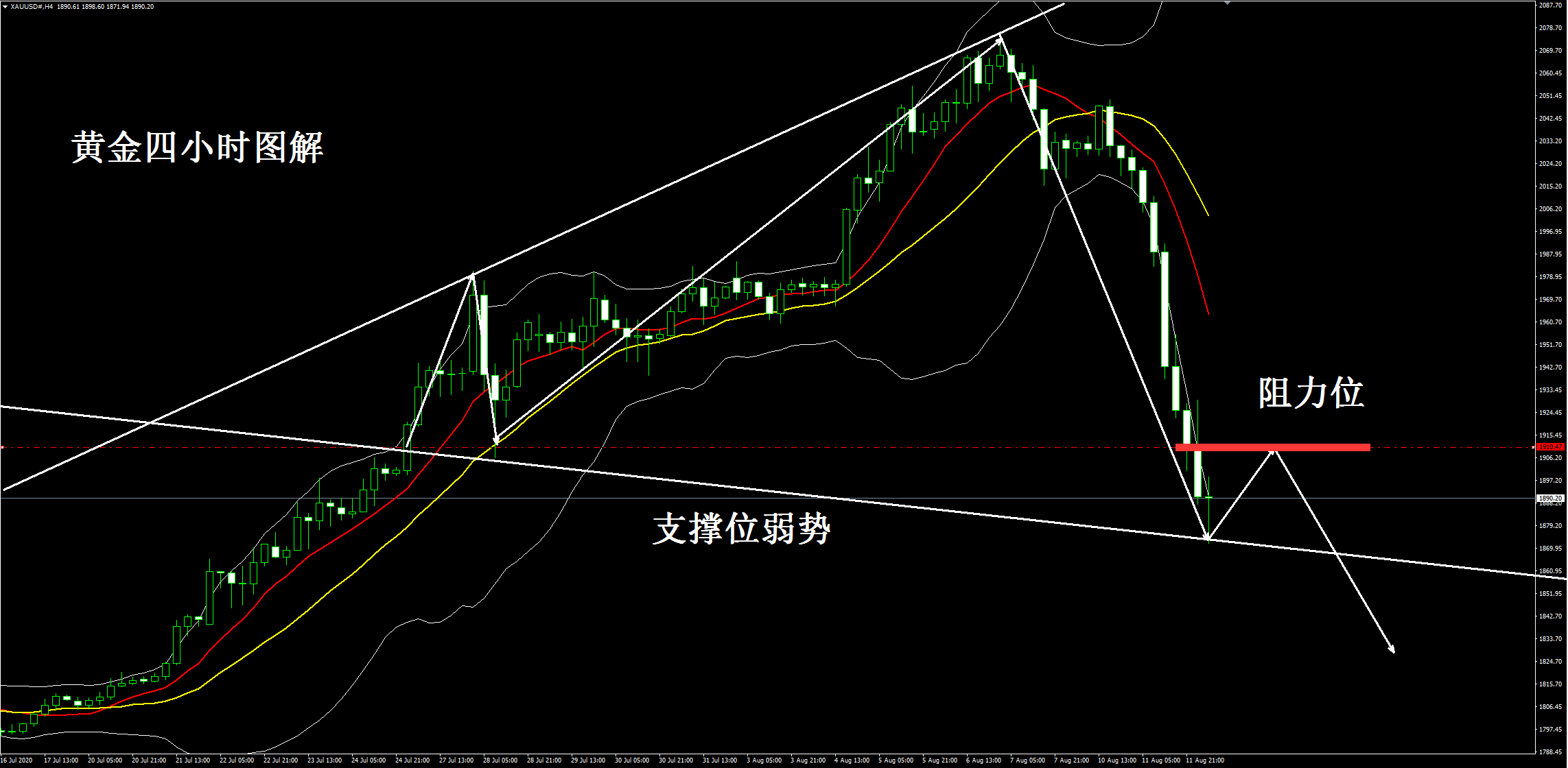 操作策略:黄金1900空,止损1910,目标1890,1880