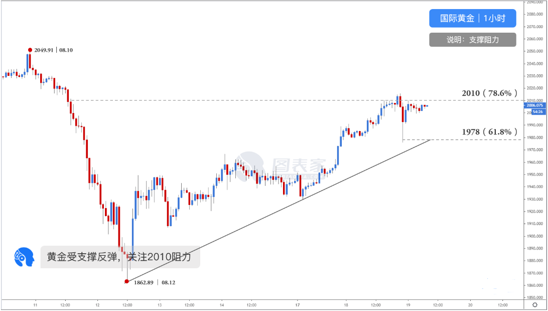 黄金守住1978支撑后再次站上2000关口,若2010破位则见2050。