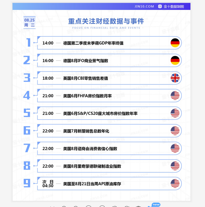 2.北京时间上周六,美国油服公司贝克休斯(Baker Hughes)公布的数据显示,截至8月21日当周,石油钻井总数增加11座至183座;当周天然气钻井总数减少1座,至69座,减少数量小于预期;总钻井总数增加10座至254座。历史表明,一旦钻井平台开始增加,页岩油区的钻井数量就会迅速增加。其结果通常是产量超出市场承受能力,这一现象最终会对油价构成压力。2014年,美国的钻井平台数量高达1606个,引发了油价崩盘,导致两年后油价从此前的100美元/桶以上升至25美元/桶左右。