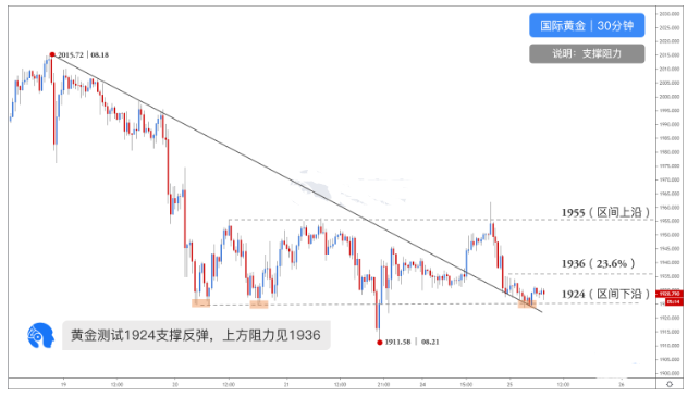 1.技术分析:黄金测试1924支撑反弹,上方阻力见1936