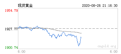 今日周三(8月26日),黄金期货盘内目前企稳1920美元/盎司以下,短线金价窄幅下行趋势,黄金价格保持区间内小跌。