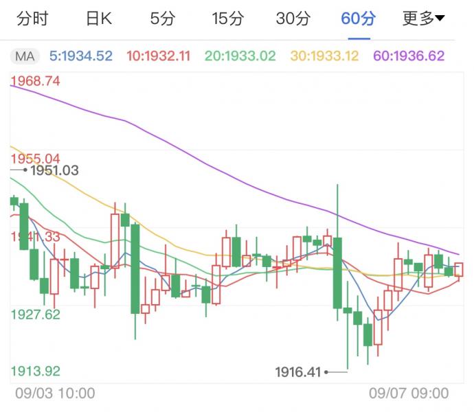 国际金价周一(9月7日)目前短线小涨至1940美元/盎司附近波动,短线黄金小阳线反弹,金价看区间微整走势。
