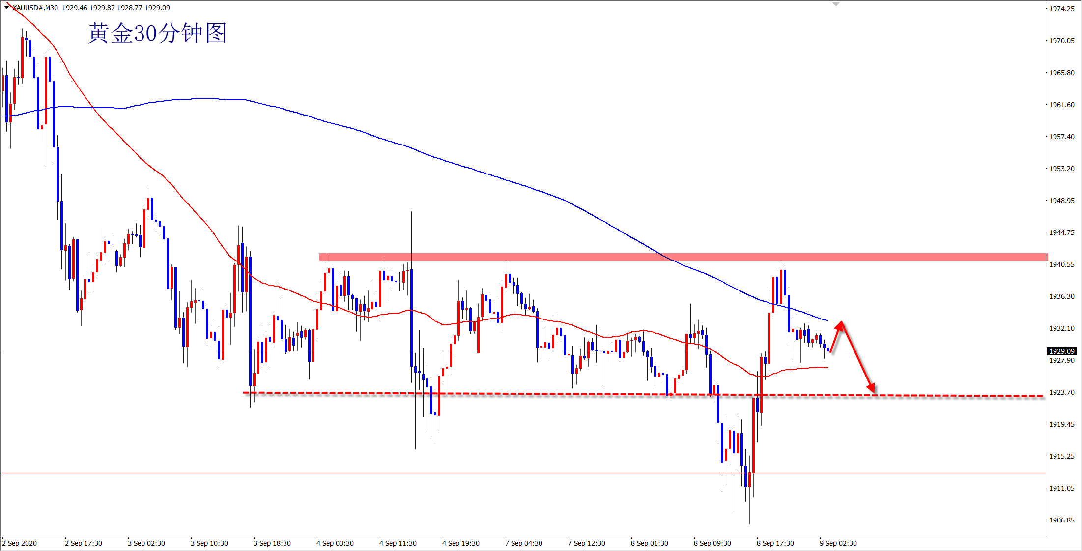 欧盘操作思路:黄金1933下空,保护1942,目标1910-1900