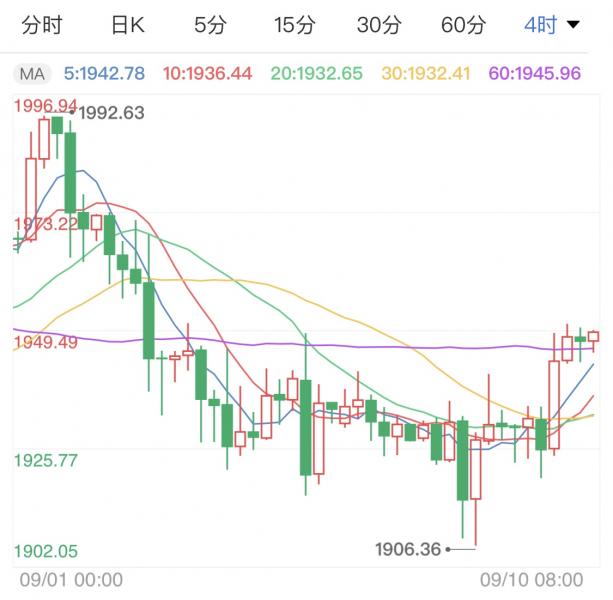 受美元指数高位回撤影响,黄金价格昨日自1920一线低位反弹,美盘期间涨至日高1950一线,较日低回升超30美元,最终收涨0.80%,报1946.30美元/盎司。