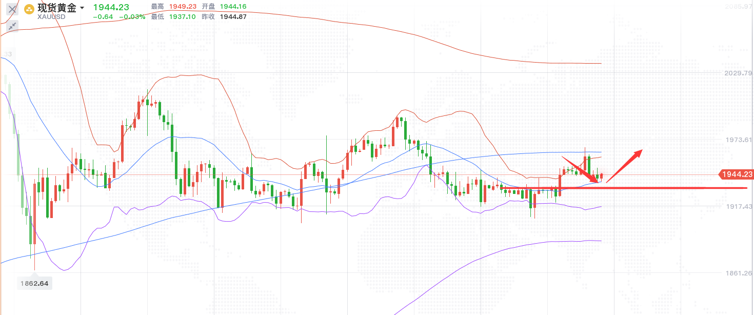 现货金在窄幅内波动。前一个交易日反转。美元坚挺对金价构成压力。此外,由于流动性需求,美国股市暴跌,黄金持有人出售黄金。然而,投资者继续逢低吸纳黄金。只要金价继续保持在1900美元以上,其长期上涨趋势在短期内就不会改变。全球央行货币供应水平仍然充裕,各国利率水平持续偏低,全球经济环境的不确定性仍然有利于避险黄金的购买需求。请注意当天的英国GDP数据和美国CPI数据。