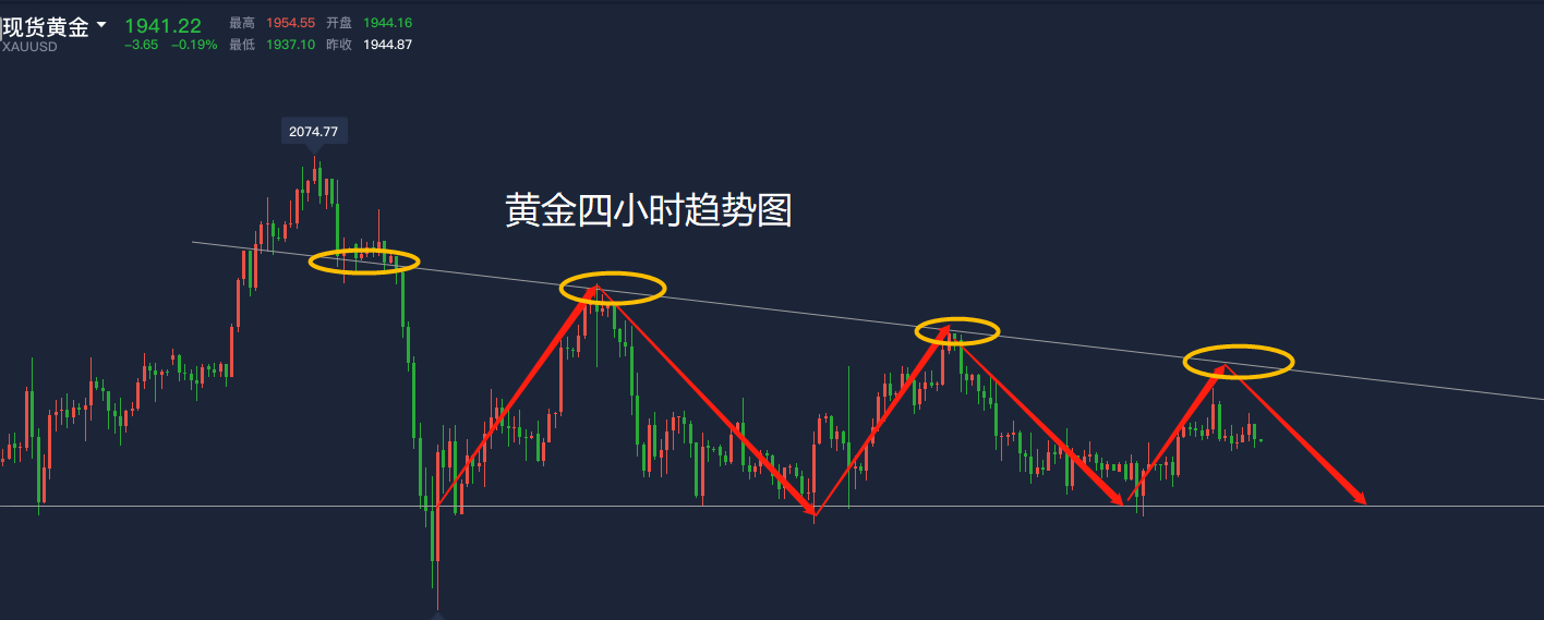 目前四小时级别至2020一带的高位在不断下移,下方的支撑统一集中在1900一线,本周开盘1930.9,最低1906,最高1966,收盘于1941.3。现在也是处于旗形震荡的末端,但趋势上不要去做多,小时线级别的*仍然在1948-1950一带,下周操作上仍然依托于1950一带做空,资金大的可以以1979作为防守分批布局空单,1950 1960,以及1965。关注本人的相信都知道,我看空但不是死空,也不会去追空,在目前这个位置尽量做多做空尽量以短线波段为主,避免所谓的中长线,免得跟自己的交易策略出现冲突,出现大幅的利润回撤,就得不偿失!