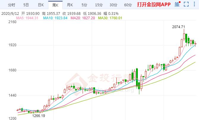 尽管美元指数连续第二周反弹,现货黄金本周终盘仍收升0.31%至1939.69美元/盎司。不过金价本周波动区间仅60美元,最近四周波幅呈现逐渐收窄态势。