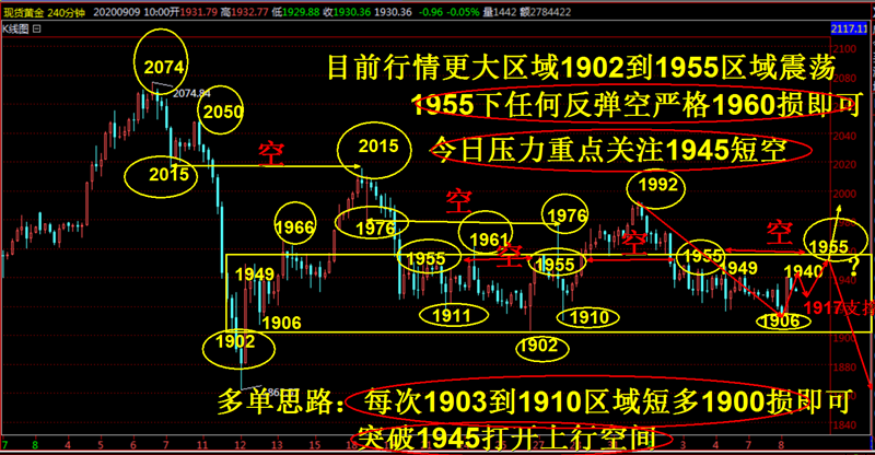 整体来说,黄金目前趋势还是维持在昨日1936-54区间内徘徊,所以说基本上也就是区间回调而已,所以整体趋势还是向往多头不变。