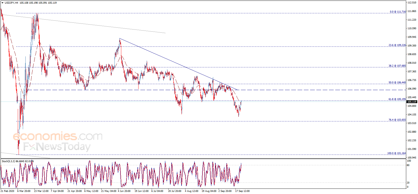 美元/日元继续上涨并测试关键阻力105.20,这一水平构成坚固障碍,随机指标失去正面动能,并传递明显的超买信号。此外,从4小时图来看,EMA 50指标对汇价形成负面压力。