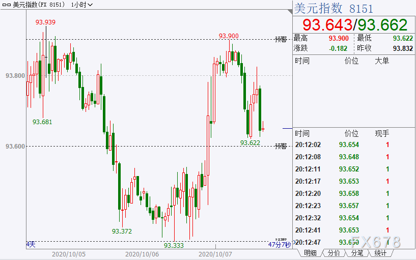 美国总统特朗普周二(10月6日)突然叫停与民主党的新一轮新冠救助议案磋商,令避险情绪升温,美元指数隔夜收高逾0.4%,导致金价录得9月23日以来最大单日跌幅的1.85%。