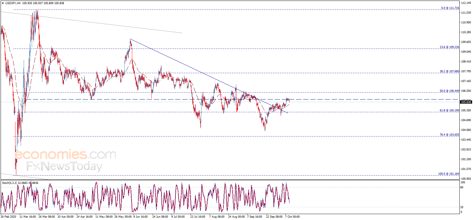 美元/日元开始今日交易后呈看空倾向,并跌破106.00。不过,随机指标摆脱其负面动能,并接近超卖区域,从4小时图来看,EMA 50指标继续对汇价构成支撑。