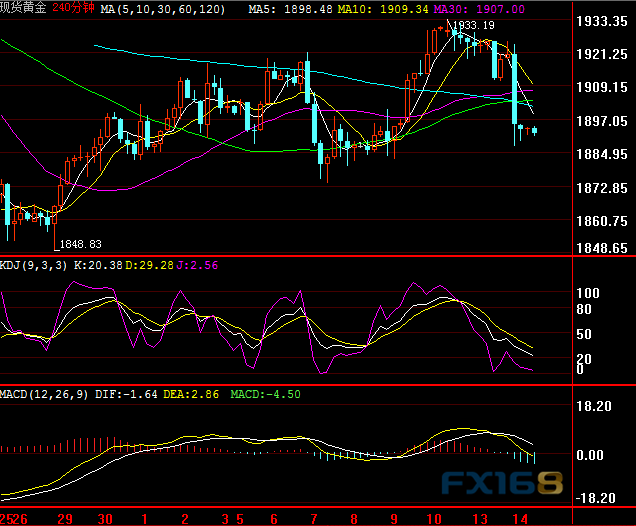 周三(10月14日)亚市早盘,现货黄金短线再度下滑,金价现报1890美元/盎司附近。知名财经网站Economies.com撰文,对金价后市走势进行分析。