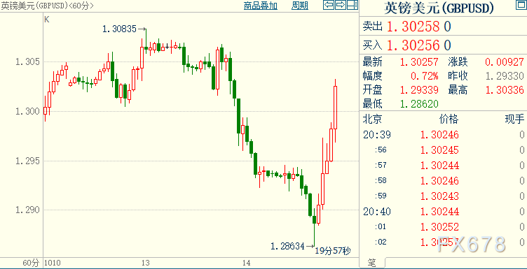 英镑兑美元升破1.30关口,日内最大涨幅逾0.5%,因英国方面暗示,不会立即退出与欧盟的贸易谈判。汇价上日收跌近1%,欧盟方面表示,已经为无法达成协议做好准备。