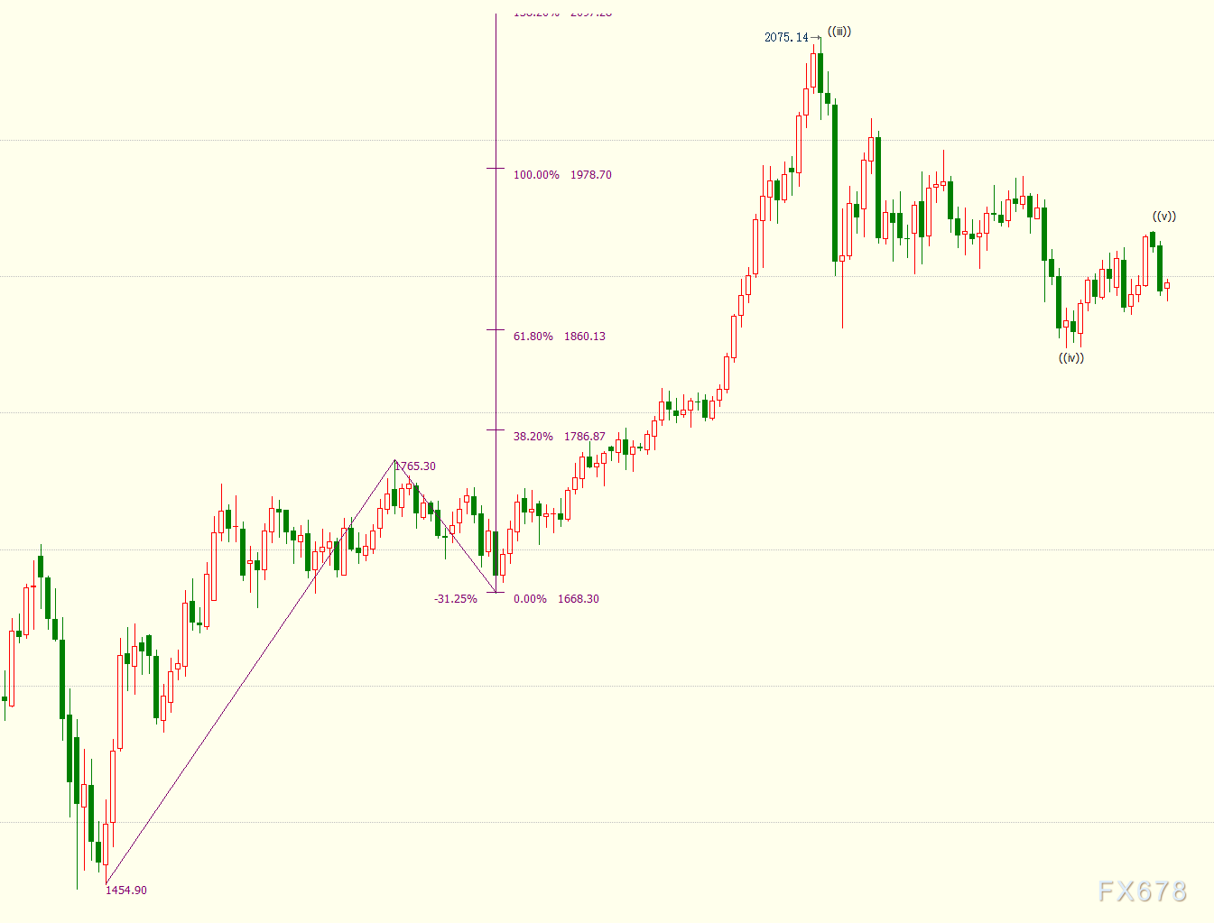ii浪和iii浪都是自1849美元开启的上行(i)浪的子浪,(i)浪是同样自此开启的上行((v))浪的子浪。日线图上看,金价上方阻力位看向1979美元,它是自1668美元开启的上行((iii))浪的子浪,((iii))浪和((v))浪都是自1455美元开启的上行3浪的子浪。