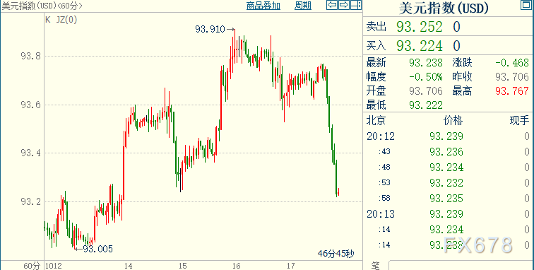 现货黄金上涨0.85%至1915.52美元/盎司;COMEX期金主力合约上涨0.69%至.5美元/盎司;美元指数下跌0.50%至93.235。