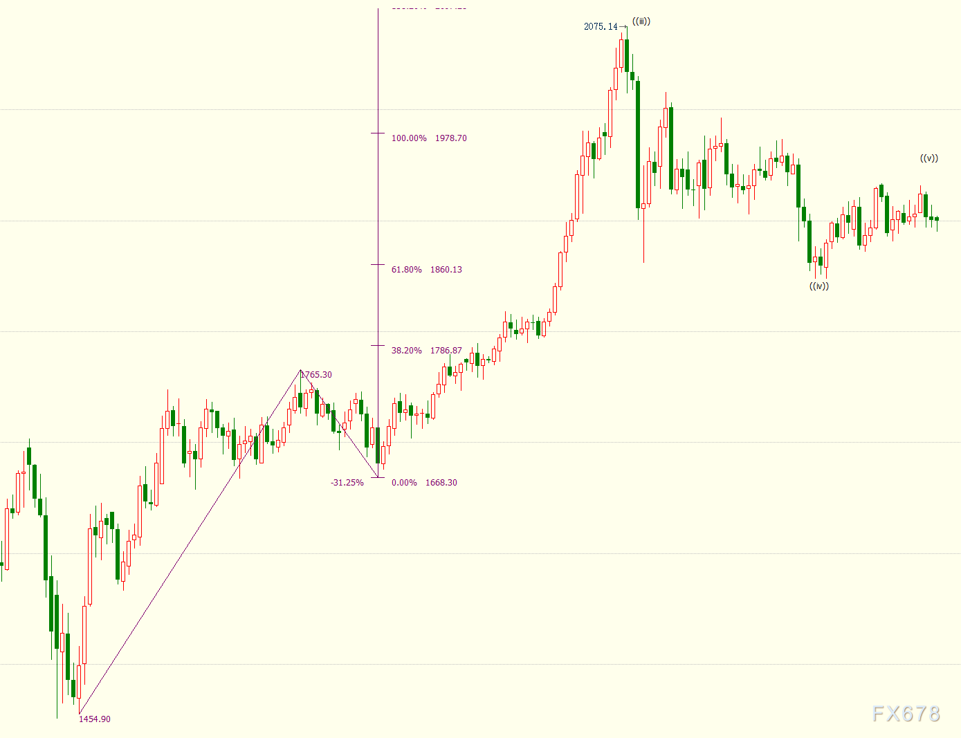 (i)浪是同样自1849美元开启的上行((v))浪的子浪。日线图上看,金价上方阻力位看向1979美元,它是自1668美元开启的上行((iii))浪的子浪,((iii))浪和((v))浪都是自1455美元开启的上行3浪的子浪。