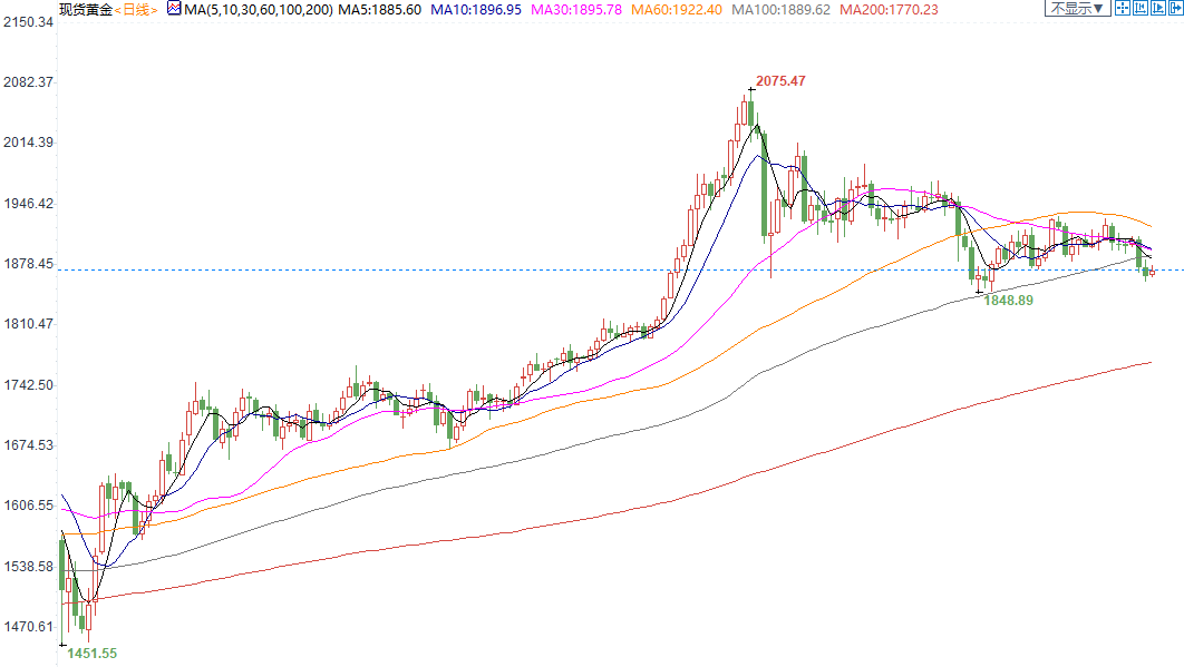现货黄金承压于1880