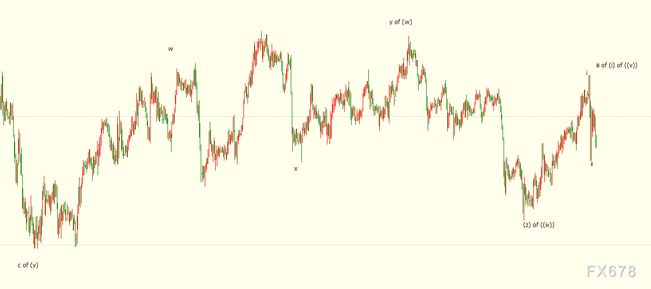金价在1860美元开启上行((v))浪走势,目前处于其中的(i)子浪。(i)浪又可细分为五个二级子浪。若金价自1883美元开启上行(iii)浪走势,100%目标位看向1939美元。日线图上看,((iv))浪和((v))浪都是自1455美元开启的上行3浪的子浪。