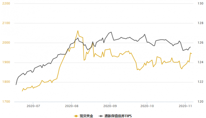 一方面是已经公布的美国大选投票结果显示民主党候选人拜登大概率当选,大选带来的不确定性下降导致市场风险偏好回升,对未来大规模财政刺激的预期增加;另一方面是秋季欧美疫情加快回升,四季度经济复苏动能下降,央行货币政策延续宽松,英国央行超预期将资产购买规模增加1500亿英镑至8950亿英镑,处于观望模式中的美联储表态鸽派。
