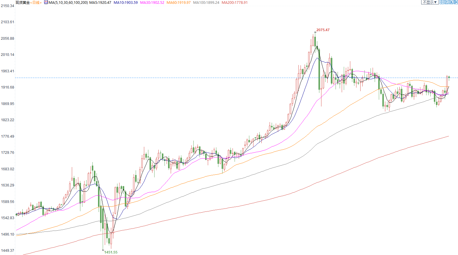 本周美国大选跌岩起伏,美元指数承压走低,黄金市场则收获了大涨,现货黄金价格一度突破1950美元/盎司。