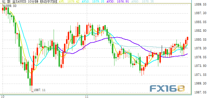 周三(11月11日)亚市盘中,美元指数小幅下滑,现报92.65附近;现货黄金短线持续拉升,金价刚刚突破1880美元/盎司关口。美元走软利好金价走势,眼下市场再度关注各国可能出台更多货币刺激措施,这也提振金价走势。此外,美国大选不确定性仍然对金价构成支撑。美国总统特朗普最新在推特上发出预告称,选票腐败将被揭露。