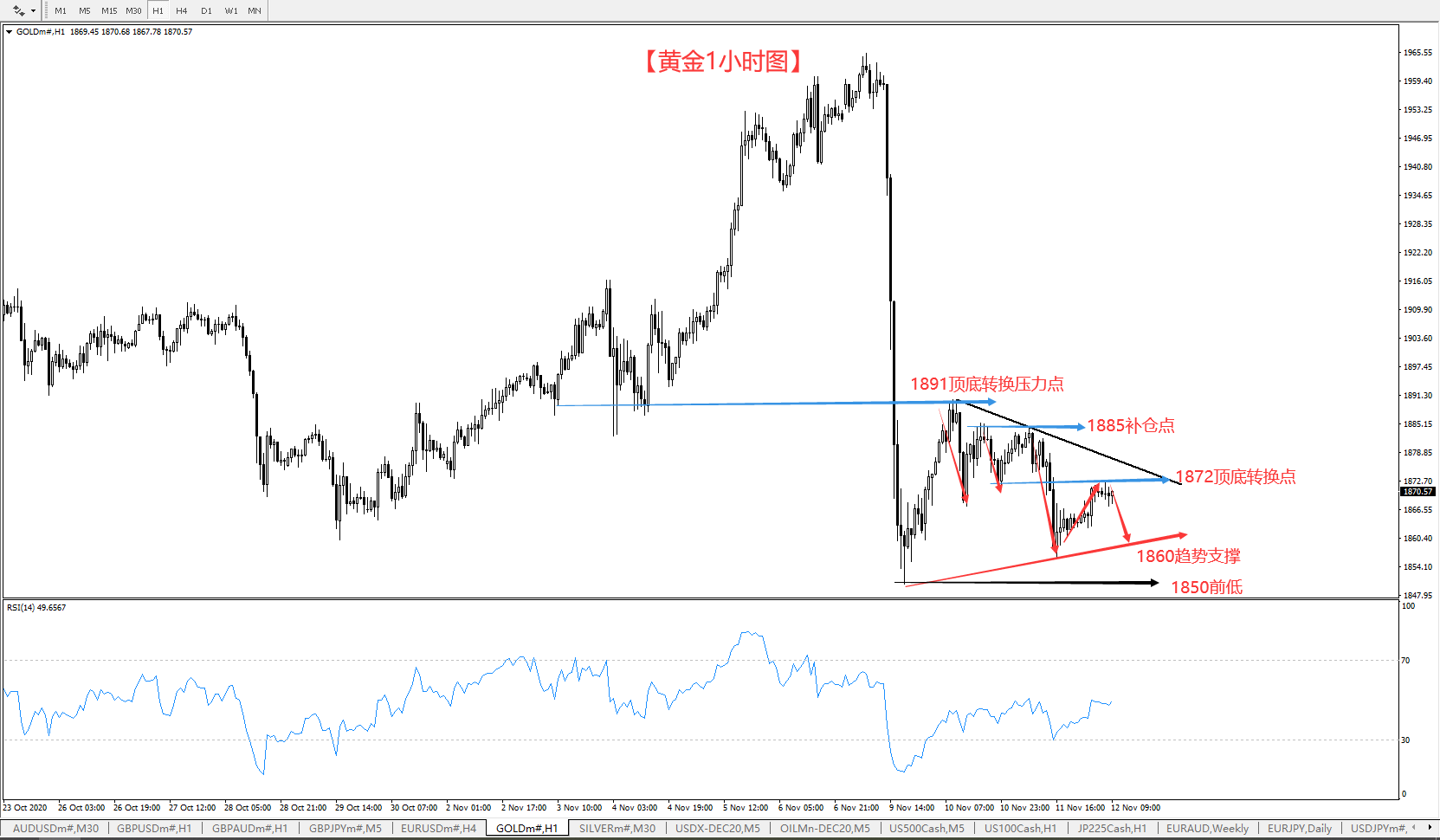 交易方面,我已经说过了,继续做空,做空点今早的视频也已经说了1870(轻仓)1885进行补仓,防守1895,目标看前低1860和1830。
