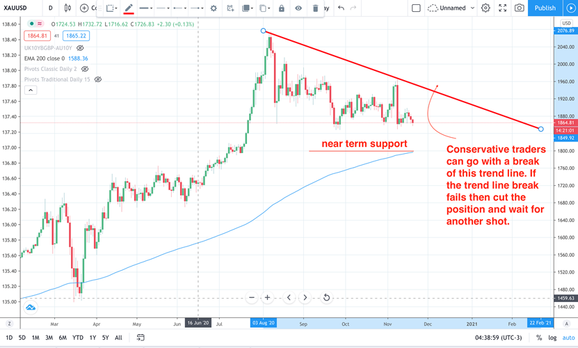 从技术面来看,保守的交易者总是可以在突破趋势线之前暂歇。如果未能成功突破趋势线,那么削减仓位等待进一步的做空。