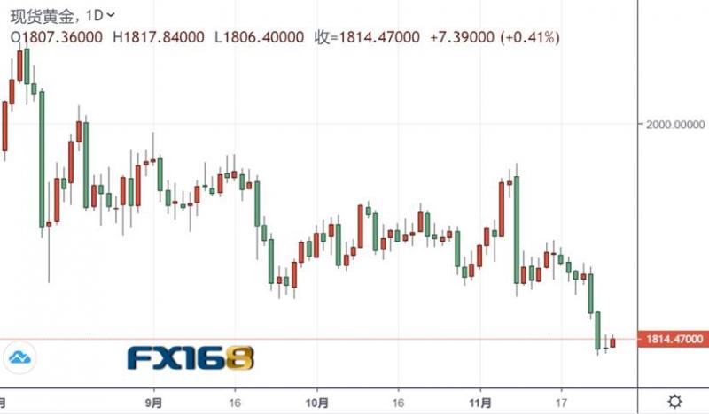 周四(11月26日)美国市场将因感恩节假期休市,市场整体交投料清淡。欧股小幅反弹,对疫苗的积极仍占上风,不过仍处于类似两周前的拉锯战中。现货黄金维持升势,目前交投在1815美元附近,但此前已经两度逼近1800关口,需警惕这一支撑能否被守住。尽管日内市场流动性或降低,但虚拟货币却爆出大行情,比特币暴跌超2000美元,跌幅超过10%,这增强了黄金的避险吸引力,此前比特币在欧美疫情加重期间的表现远远好于黄金。