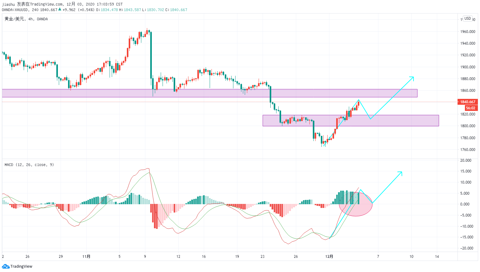 今天是12.3,我是嘉树,昨天我对黄金看新低,4小时级别二次背离还非常有信心,但是伴随着隔夜黄金的连续拉升,虽然拉升幅度不大,但是架不住维持时间久啊,导致4小时级别MACD快慢线直接来到了0轴上方,这也就彻底破坏了黄金4小时二次背离的技术形态,我的高位黄金空单只能忍痛离场,目前等待合适点位入场做多黄金!