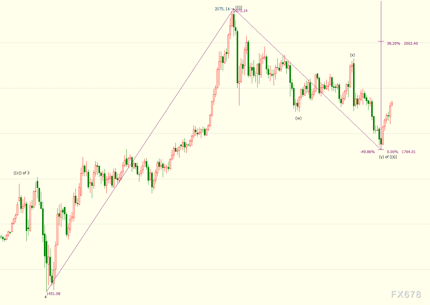 日线图上看,金价自1764美元开启上行((iii))浪走势,(i)浪是((iii))浪的子浪。((iii))浪则是自1451美元开启的上行5浪的子浪,((iii))浪的23.6%目标位在1911美元。