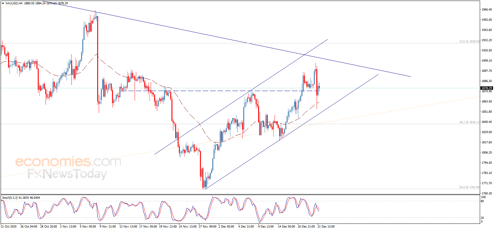 周二(12月22日)亚市早盘,现货黄金小幅上涨,金价现报1879美元/盎司附近。知名财经网站Economies.com撰文,对金价后市走势进行分析。