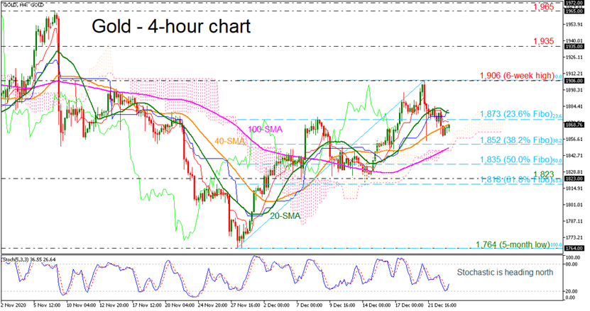 黄金收于40期均线以及23.6%斐波那契水平上方将会照亮更广阔的前景,促使价格升至20期均线1878美元,突破这一水平,升势则可能会加速看向1906美元进一步看向1935美元阻力。