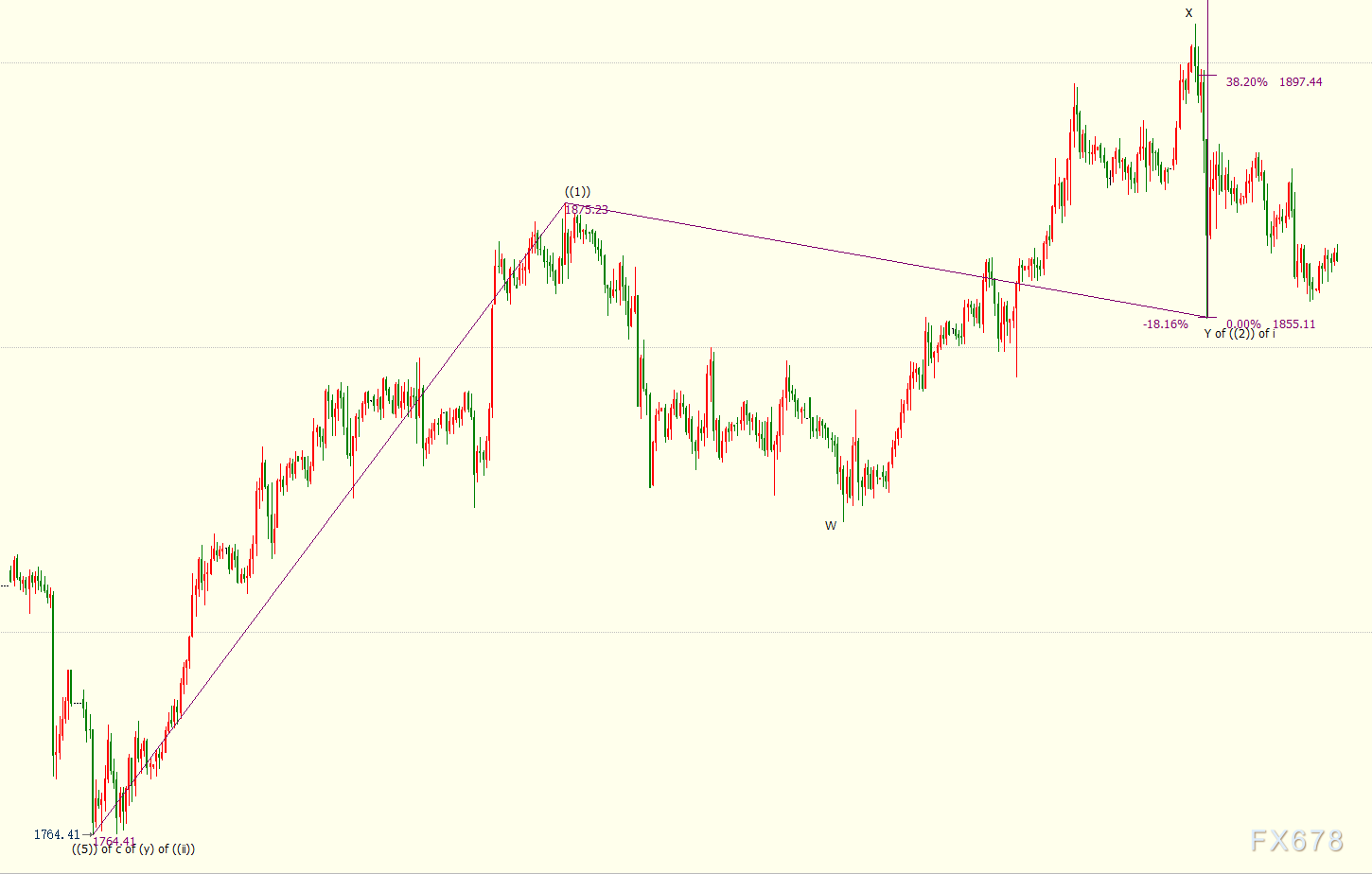 现货黄金处自1875美元开启的调整((2))浪走势出现延伸,但后市仍看涨。若金价在1855美元结束((2))浪,并开启上行((3))浪走势,那么阻力位上看((3))浪38.2%目标位1897美元。((2))浪和((3))浪是自1764美元开启的上行i浪的子浪,i浪是同样从1764美元开启的上行(i)浪的子浪。
