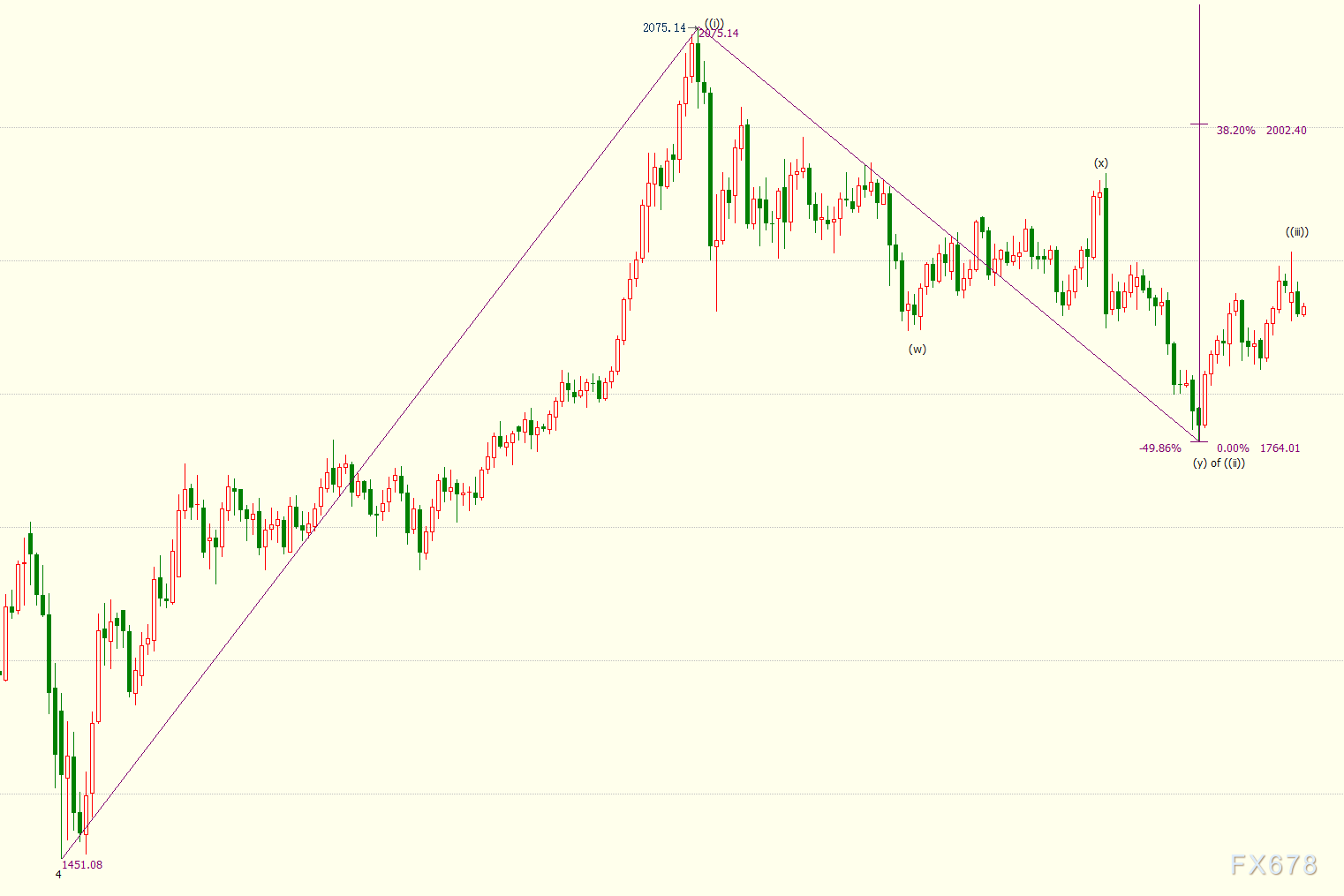 日线图上看,金价自1764美元开启上行((iii))浪走势,(i)浪是((iii))浪的子浪。((iii))浪的23.6%和38.2%目标位分别在1911美元和2002美元,((iii))浪是自1451美元开启的上行5浪的子浪。