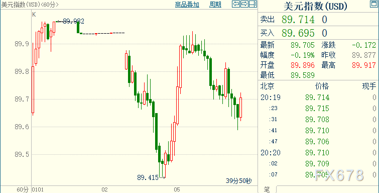 金价继续刷新11月9日以来高位至1950.54美元/盎司,美指重新逼近上日录得的2018年4月中旬以来低点89.415。