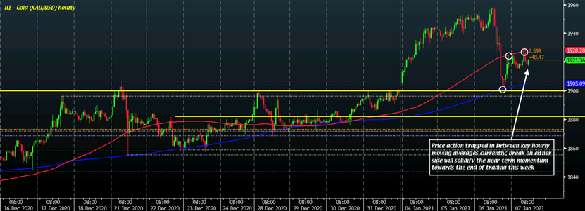 因此,黄金处于关键的小时移动均线之间的角力中,而下一个重要的技术移动将取决于在任何一方出现突破。
