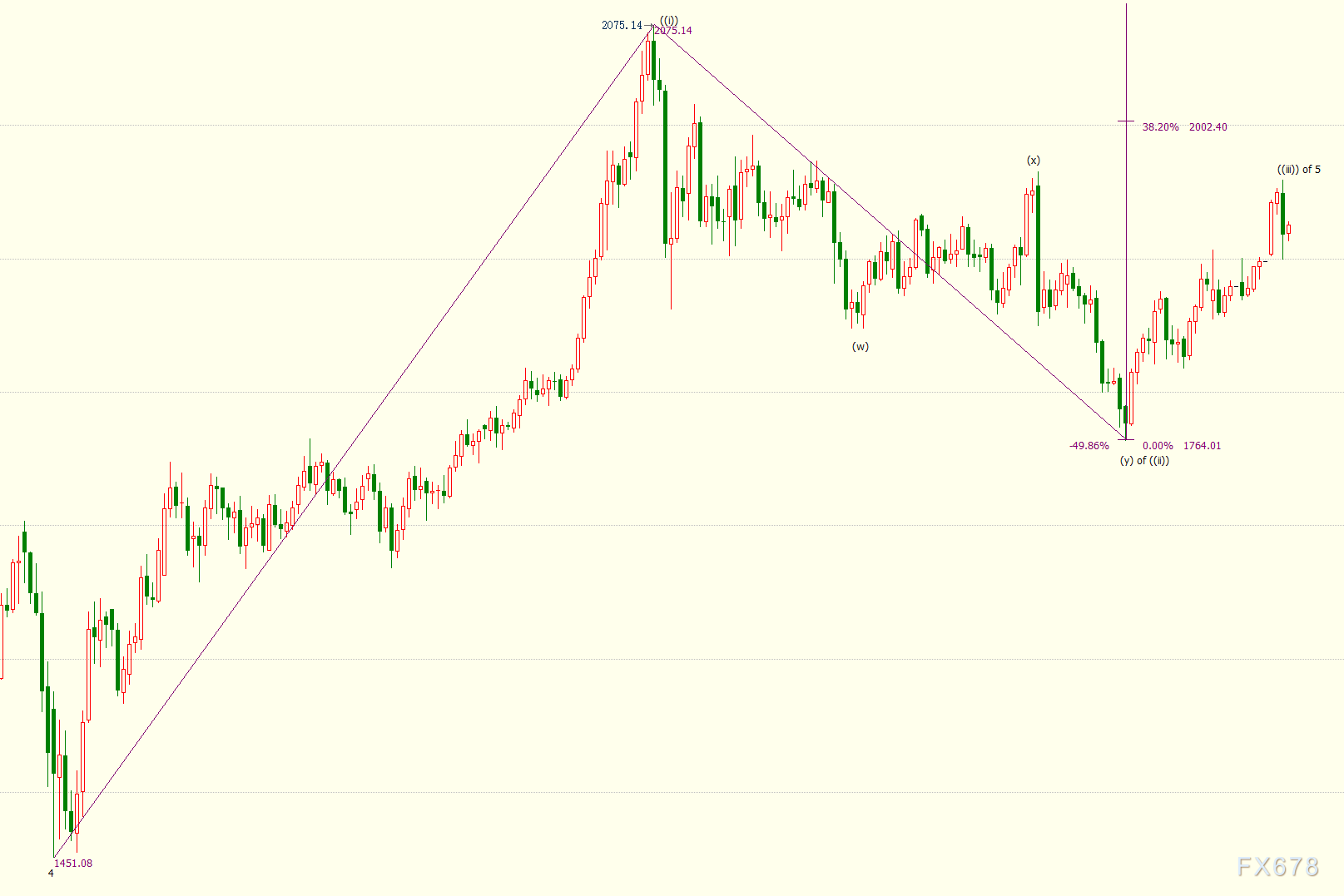 日线图上看,金价自1764美元开启上行((iii))浪走势,((i))浪是((iii))浪的三级子浪。((iii))浪的38.2%目标位在2002美元,((iii))浪是自1451美元开启的上行5浪的子浪。