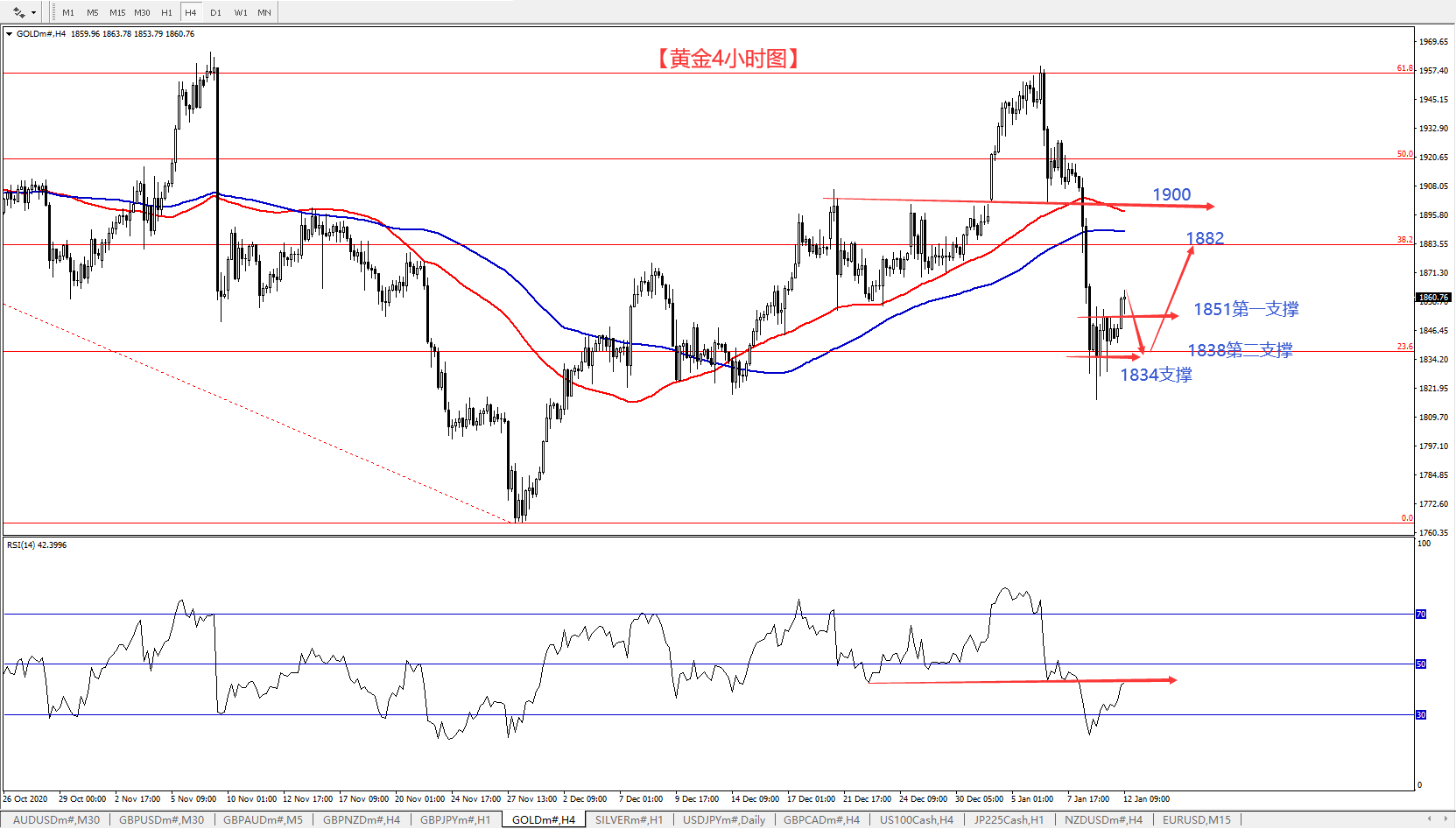 2021-01-12周二,今天的黄金走势,跟上一个交易日的走势并没有太大的出入,也就是波动方面没有上一个交易日的波动大,但是整体的结构尚未作出改变,还是处于造底,短期震荡上行。