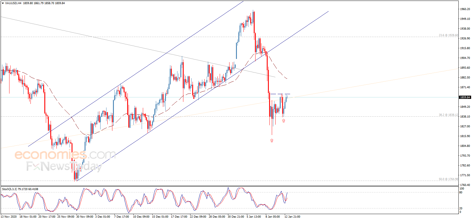 周三(1月13日)亚市盘中,现货黄金温和上涨,现报1858美元/盎司水平附近。知名财经资讯网站Economies.com周三最新撰文,对日内黄金走势进行前瞻分析。