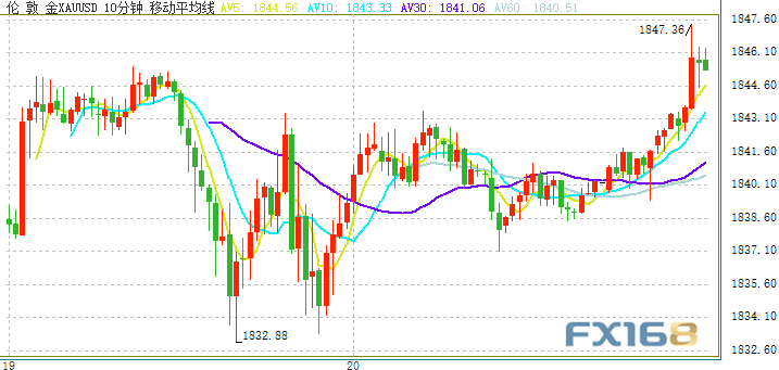 因美元仍承压,更多刺激措施出台的前景提振了黄金作为通胀对冲工具的吸引力,金价周二守住涨幅。现货黄金周二收报1840.13美元/盎司,上涨3.04美元或0.17%。周三亚市早盘,金价短线急涨,最高一度触及1847.36美元/盎司
