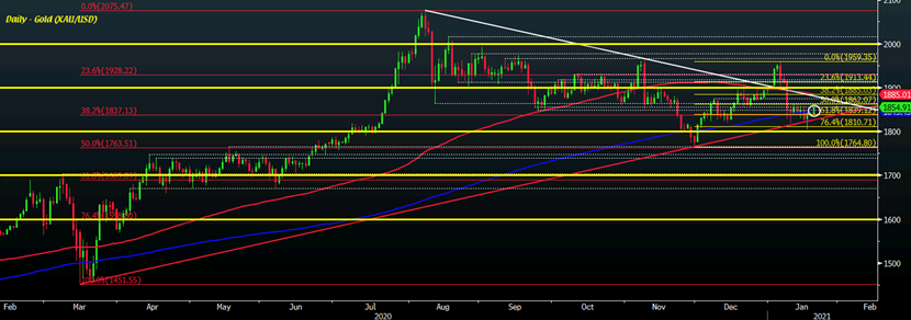 200日移动均线(DMA)在1844.00美元,将继续作为盘中的轴心点。50日移动均线在1859.00美元,以及之后的1865.00美元区域继续成为进一步上涨的障碍。